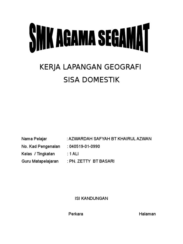 Kerja Lapangan Sisa Domestik / Sisa Domestik Ting 1 Kja Lapangan Pdf
